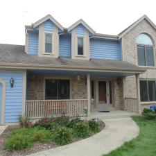 Using Hallman Lindsay Weatherguard Paints, we expertly spray-painted and back-brushed all the siding and soffits in the chosen blue hue, delivering a seamless and uniform finish. Additionally, we meticulously brushed and rolled all the trim to enhance the overall aesthetic appeal of the home.