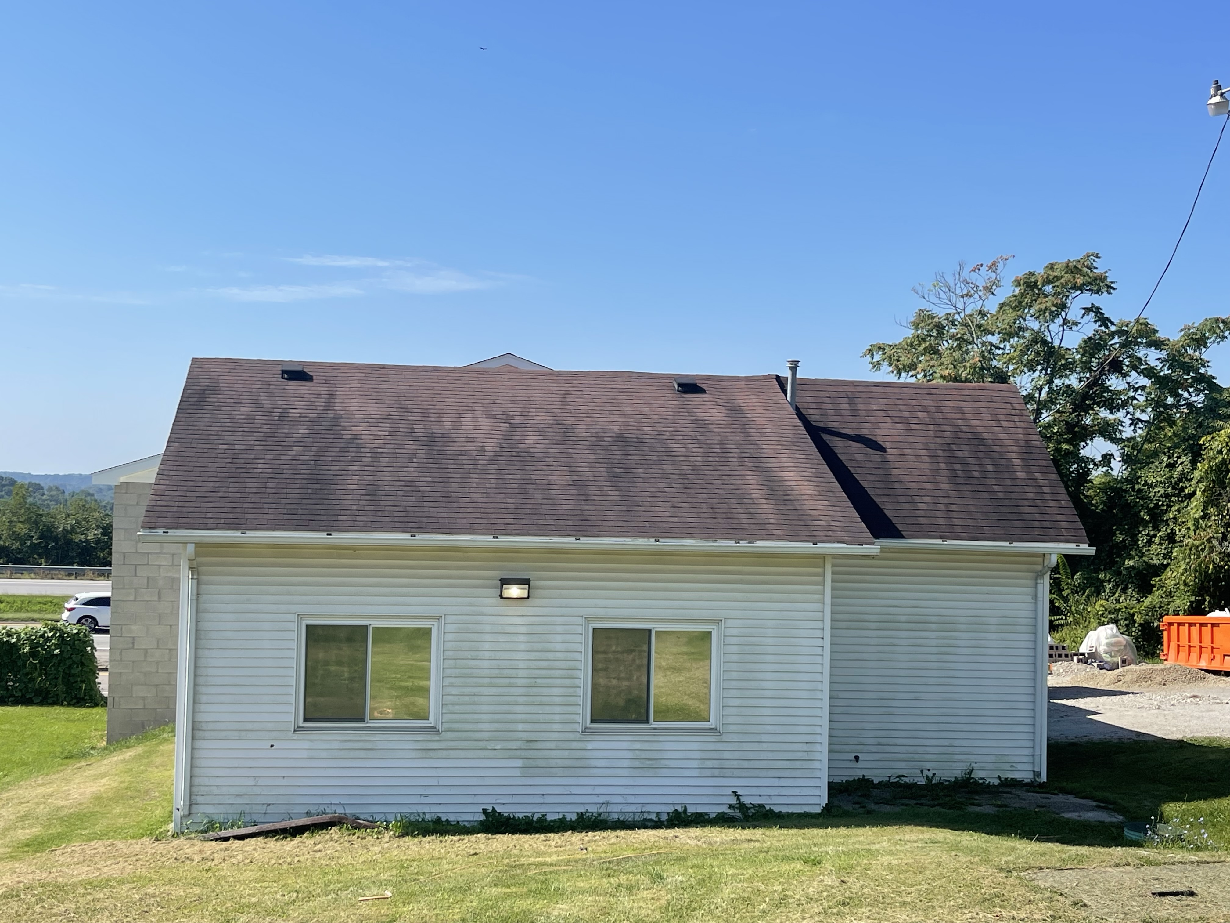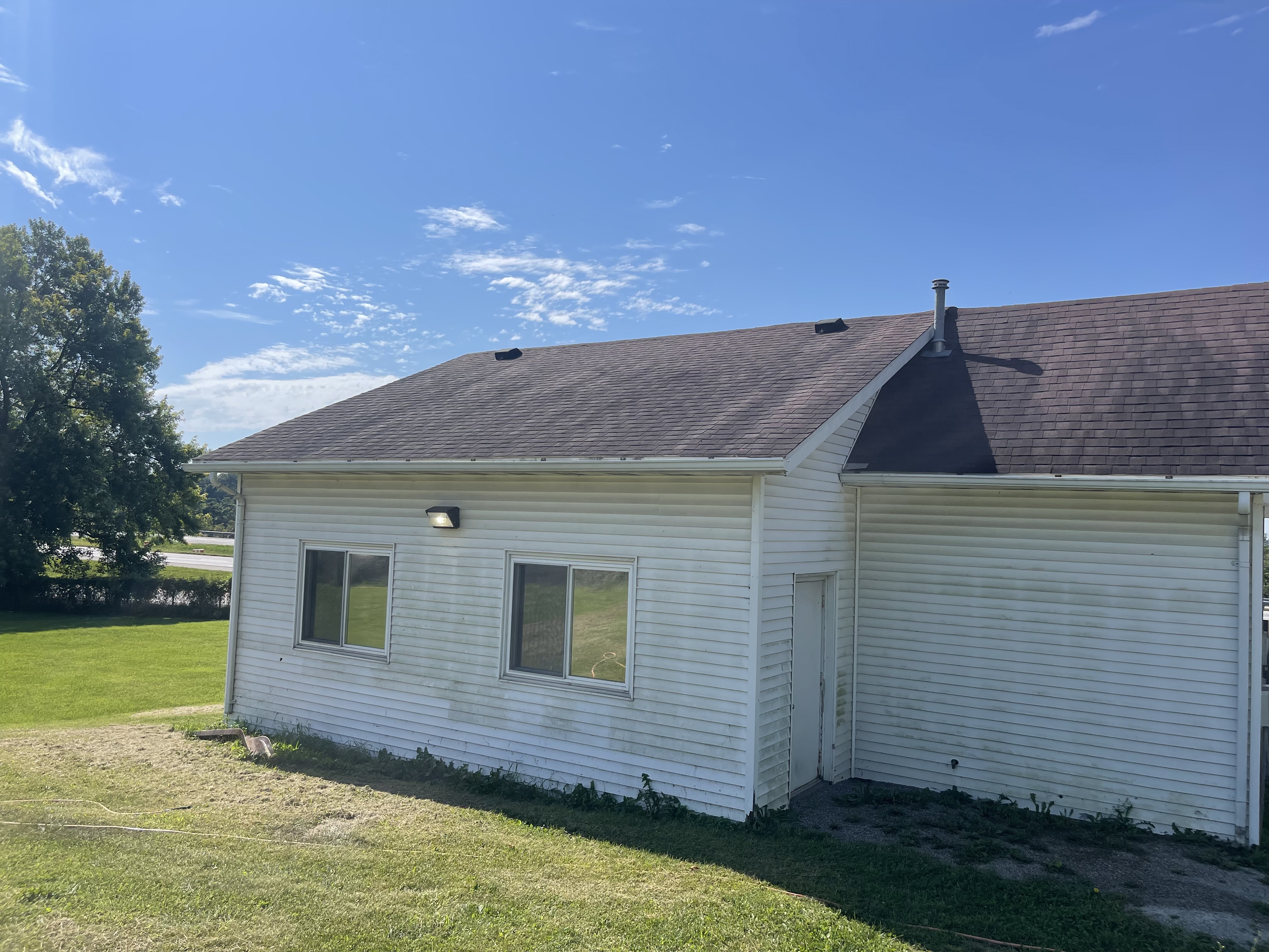 Leasure Enterprises recently had the opportunity to revitalize the road-facing section of a building, breathing new life into its appearance with our professional roof cleaning services. The building's old siding and shingles had accumulated years of grime and wear, diminishing its curb appeal and overall aesthetic. By utilizing our specialized low-pressure equipment and expert techniques, we were able to thoroughly clean and restore these surfaces without causing any damage. Our comprehensive roof cleaning process not only improved the building's visual appeal but also contributed to the longevity and durability of the materials.