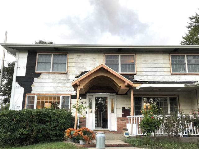 In addition to the siding replacement, we also addressed other areas of the exterior to complete the makeover. This included the installation of a new front reverse portico over the front door, providing both aesthetic charm and functional value. We also replaced the door itself, further enhancing the home's overall appearance and security.